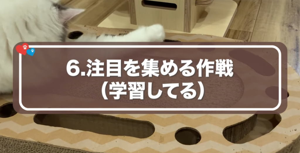 爪とぎをやれば注目してくれるって学習している猫ちゃんもいます。